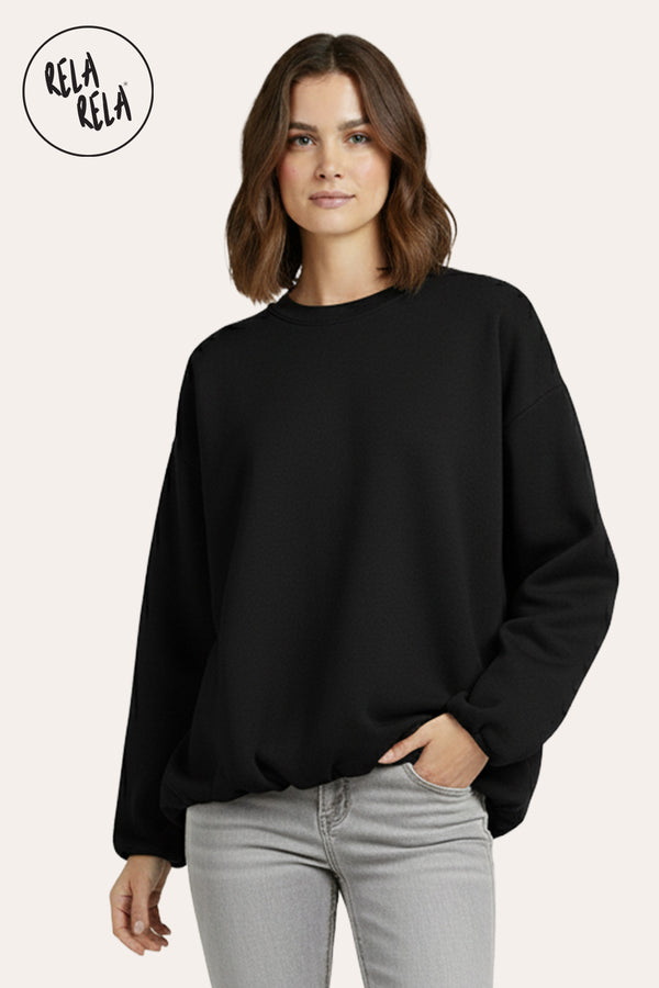 Oversized Ruched Hem Long Sleeve Jumper in Black