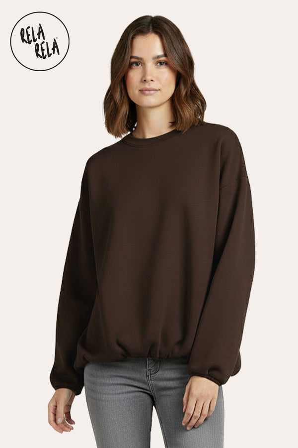 Oversized Ruched Hem Long Sleeve Jumper in Chocolate