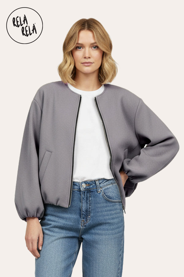 Oversized Zip-Up Casual Bomber Jacket in Grey