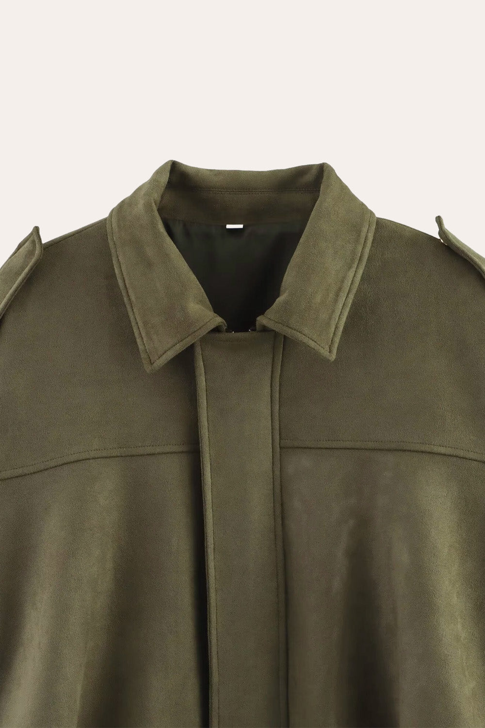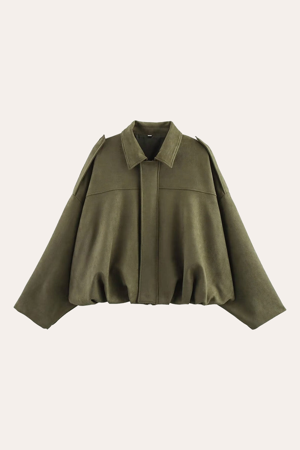 Khaki Faux Suede Bomber Jacket – Vintage Edge, Modern Versatility