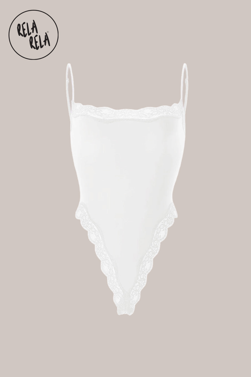 Whether you pair it with jeans, skirts, or tailored trousers, this white stretchy lace trim bodysuit delivers timeless sophistication with a modern edge.