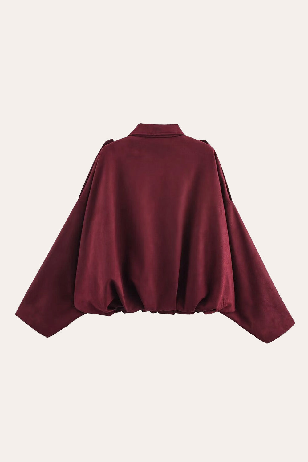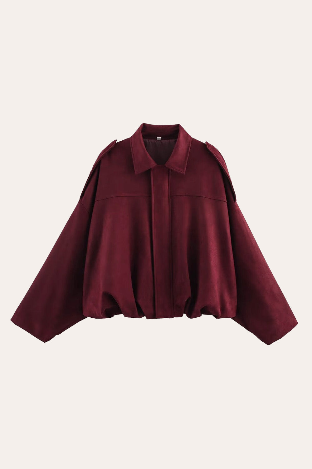 Burgundy Faux Suede Bomber Jacket – Sleek Style, Everyday Versatility