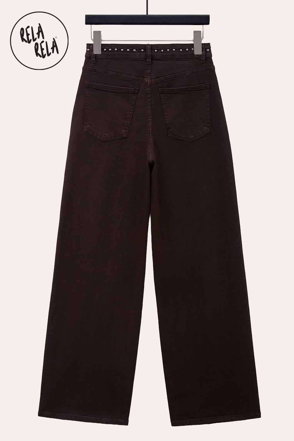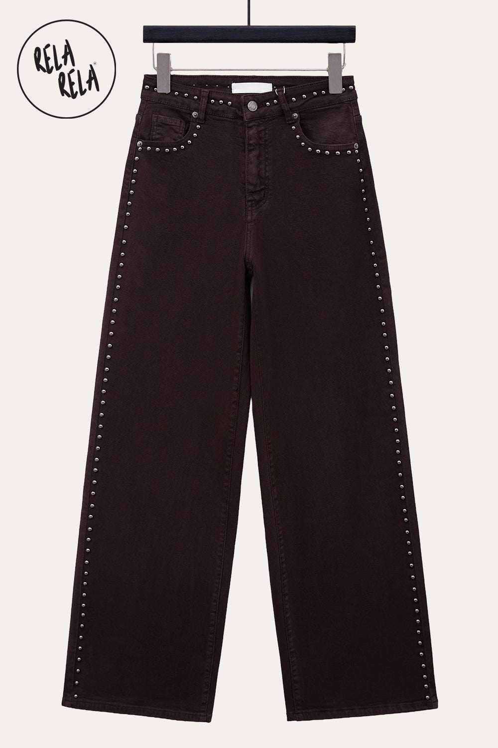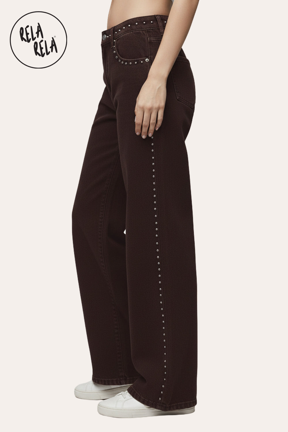 Chocolate Dad Fit Wide Leg Jeans with Studs – Viral Stretchy Casual Fashion