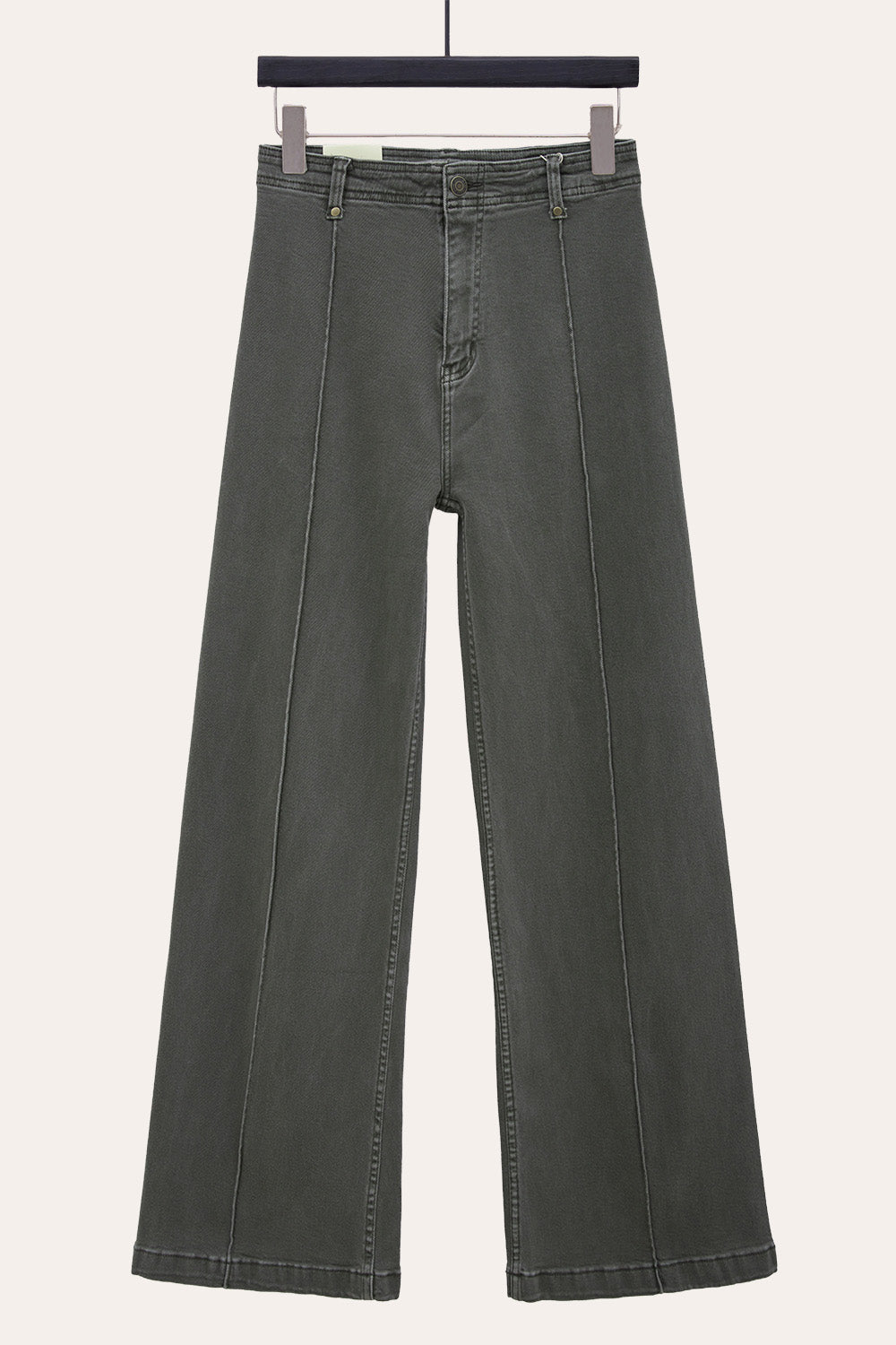 High Waist Visible Seam Khaki Wide Leg Denim Jean