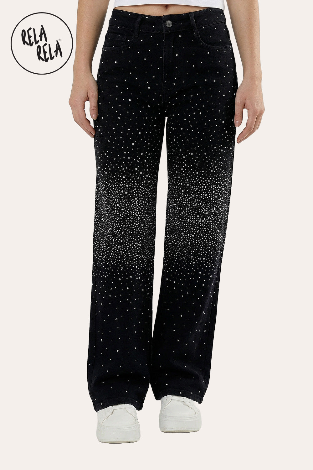 Relaxed Wide Leg Silhouette – These sparkle wide leg jeans are designed to drape effortlessly, creating a long, elegant line.
