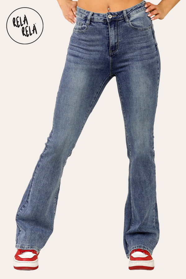 Classic meets comfort in the RELA RELA Flared Stretchy Jeans in Denim Blue—a must-have blend of ease, structure, and flattering design.
