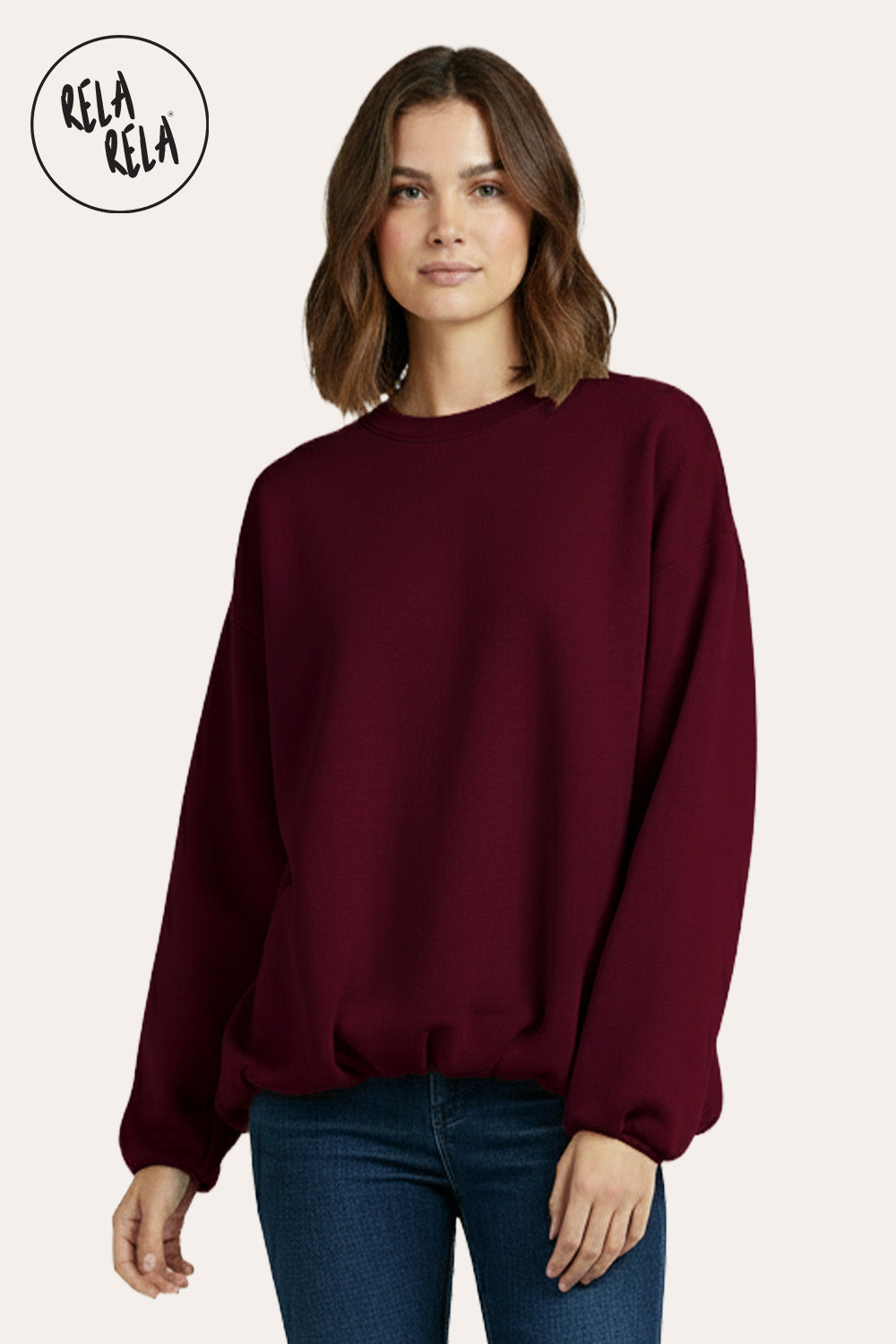 Add a rich pop of color to your wardrobe with this burgundy oversized long sleeve jumper. Made from soft knit fabric, it combines cozy warmth with a relaxed fit that flatters every body type. The ruched hem detailing adds a subtle gathered effect, giving this laid-back piece a modern, feminine edge.