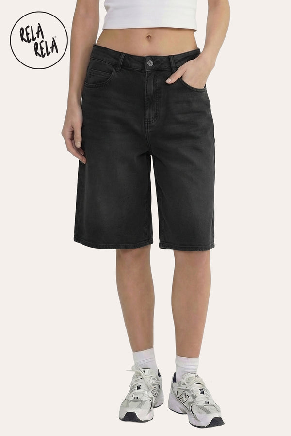 Viral Stretchy Low Rise Baggy Longline Denim Bermuda Shorts – Charcoal