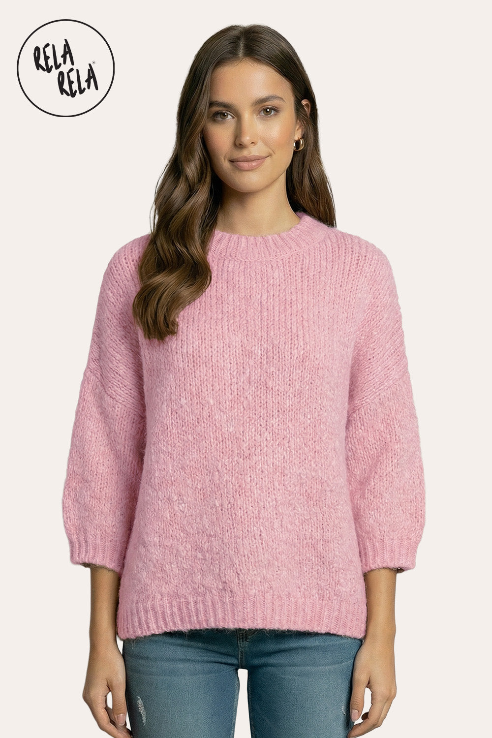 Half Sleeve Knitted Crewneck Jumper in Pink – Playful Charm