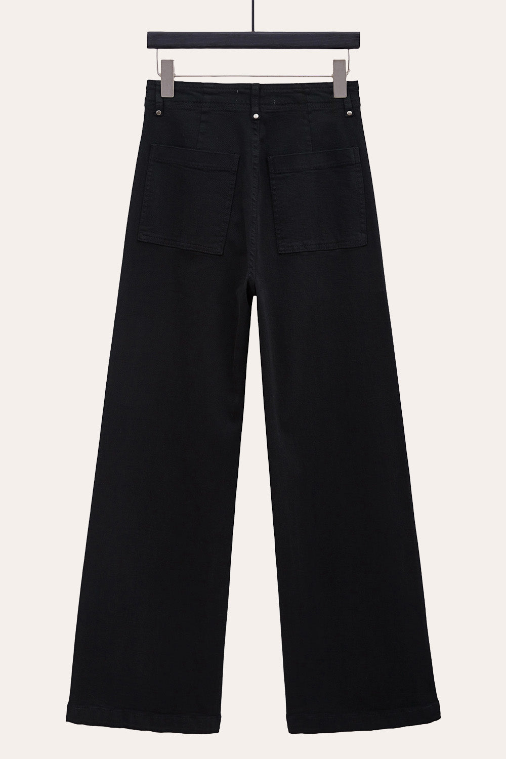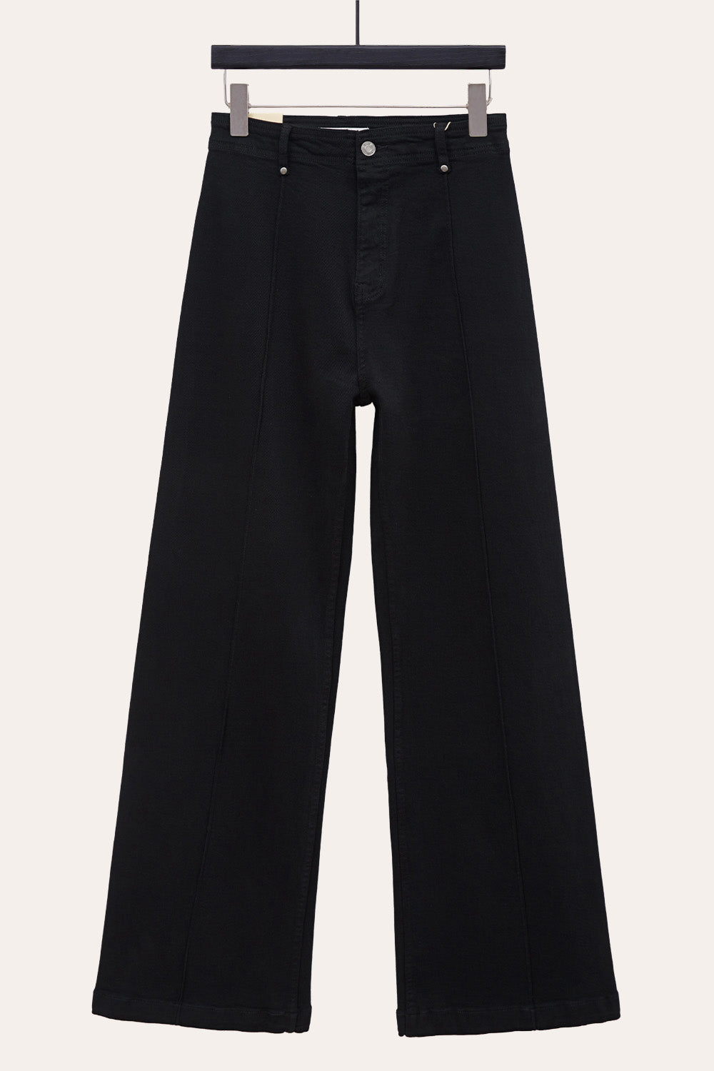 High Waist Visible Seam Black Wide Leg Denim Jeans