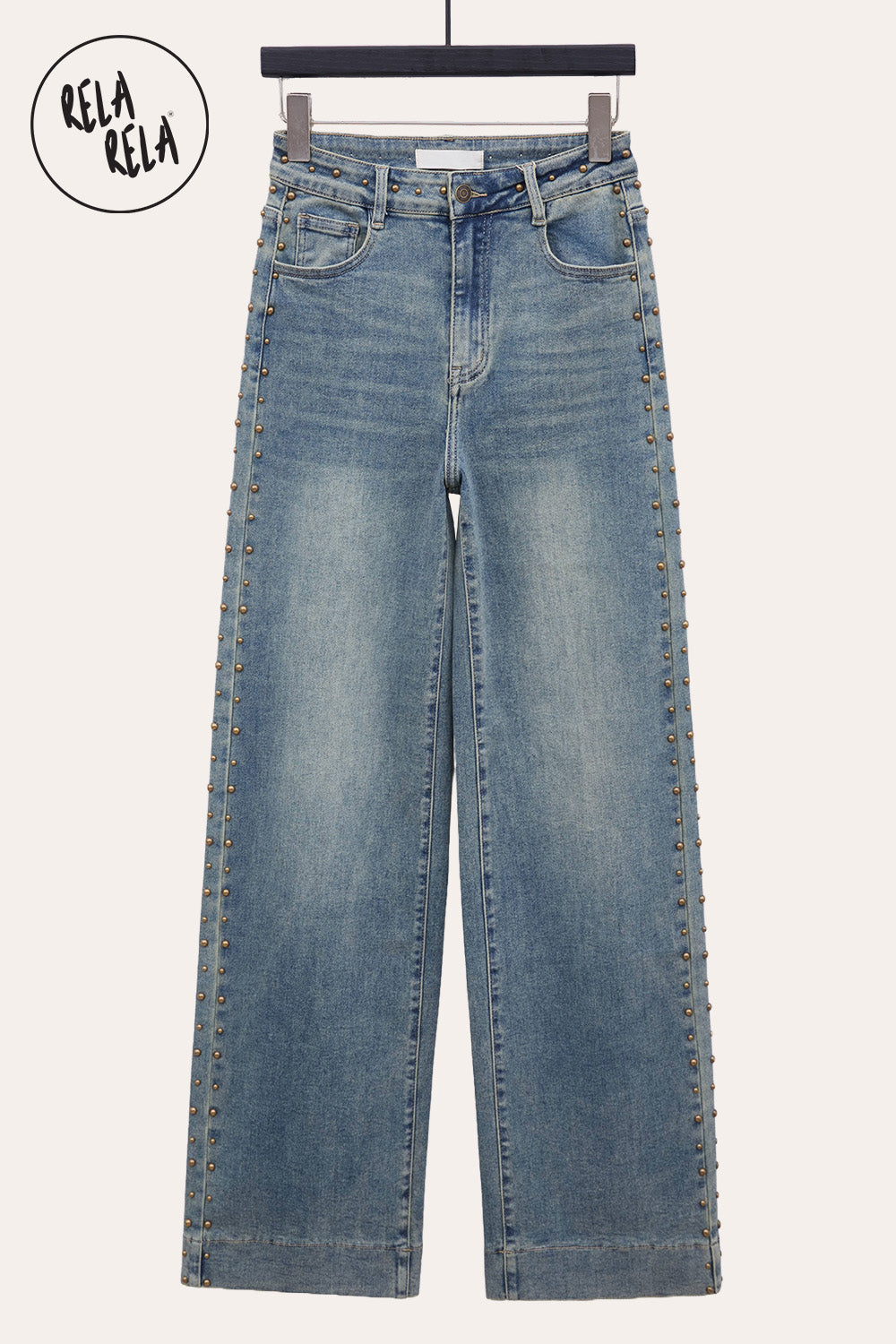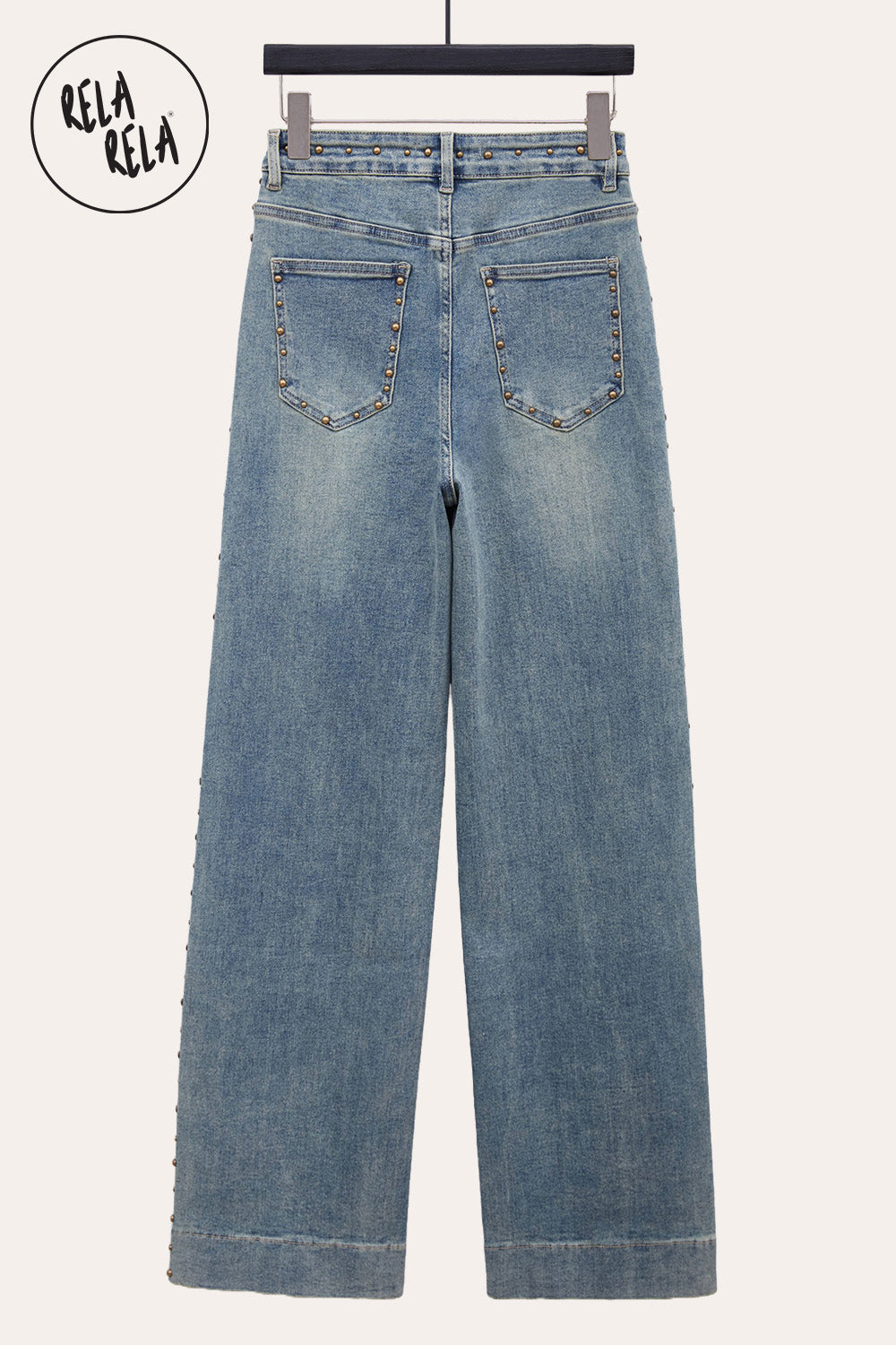 Stretchy Studded Rivet Wide Leg Jeans – Vintage Blue